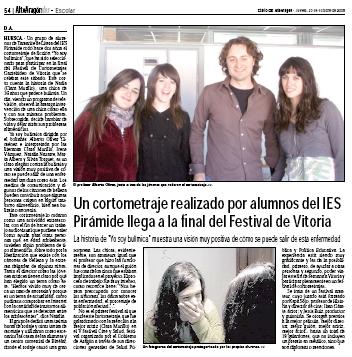 «Yo soy bulímica» realizado por las alumnas del IES La Llitera llega a la final de Gazteibideo