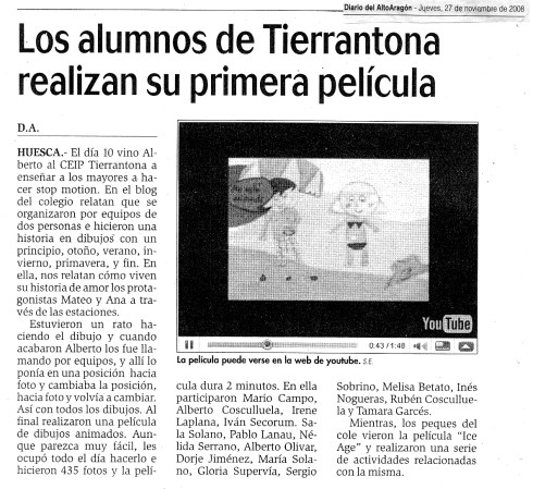 «Pequeño azul, pequeño amarillo» es una animación hecha por los alumnos del CEIP «Ramón y Cajal» de Alpartir (Zaragoza) con la colaboración de Alberto Olivar. Es una adaptación muy fiel al cuento ilustrado de Leo Lionni con el mismo título. El rodaje se realizó en una jornada de trabajo y participarón todos los alumnos y profesores de Alpartir, pasando un día muy divertido. La Fundación Lumière la va a utilizar «como ejemplo de historia en la que se ensalzan la amistad, la inocencia, la identidad individual y colectiva, así como el trabajo realizado por los chicos del CEIP para ilustrar esos valores con un corto».