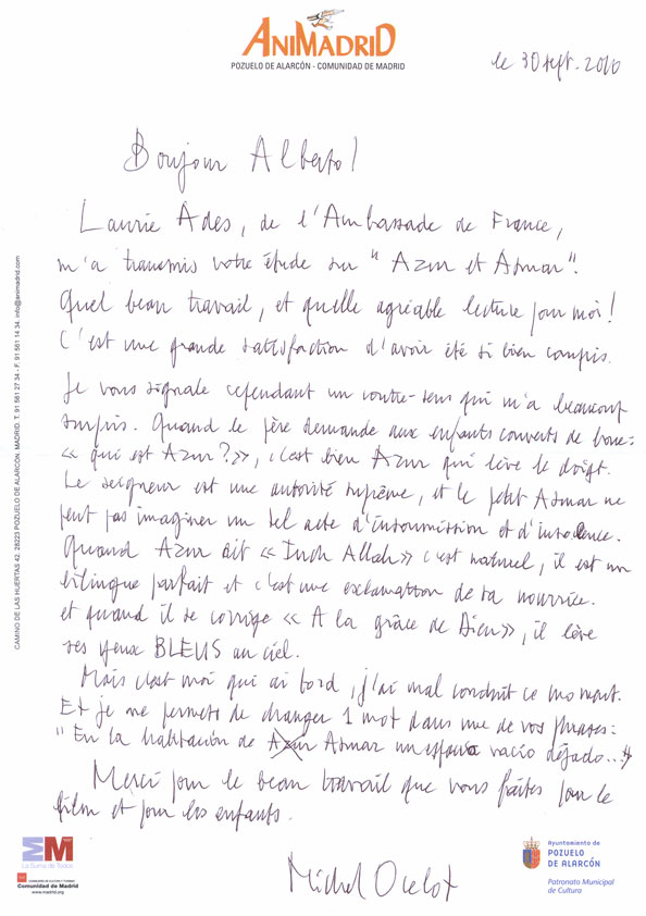 Carta de felicitación de Michel Ocelot